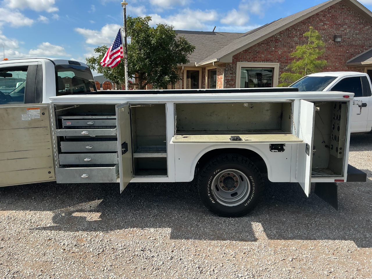 2019 FORD F350 REGULAR CAB DUALLY IN 12FT BED, 6.2L GAS AND RWD, POWER WINDOWS AND LOCKS, CRUISE, BLUETOOTH, BACK UP CAMERA, AUX SWITCHES, TRAILER BRAKE CONTROL, AMERICAN EAGLE TOOL TRTAY, AND A KNAPHEIDE SERVICE BED, RUNS GREAT , TIRES ARE 90% AND HAS 130K MILES