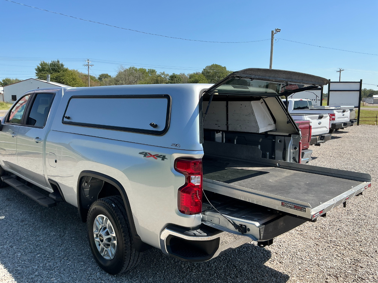2020 CHEVROLET K2500 CREW CAB LONGBED, 6.6L GAS AND 4WD, LT PACKAGE WITH POWER WINDOWS AND LOCKS, CRUISE, BLUETOOTH, HEATED SEATS, BACK UP CAMERA, TOUCH SCREEN, POWER SEAT, TRAILER BRAKE CONTROL, POWER TAILGATE, HAS AN ARE TOPPER WITH GLIDE ROLL OUT TRAY, VERY CLEAN AND RUNS GREAT HAS 110K MILES