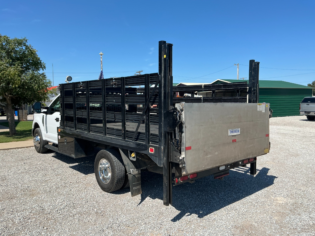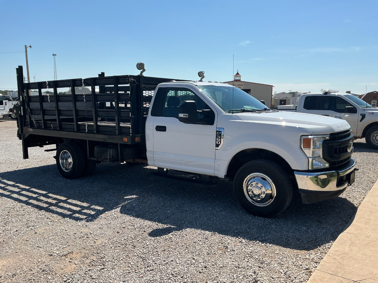 2020 FORD F350 REGULAR CAB DUALLY WITH 12FT BED, 6.2L GAS V8 IN AUTOMATIC AND RWD, POWER WINDOWS AND LOCKS, CRUISE, BLUETOOTH, BACK UP CAMERA, AUX SWITCHES, STAKE BED WITH SIDES AND THIEMAN OVERSIZE LIFT, TIRES ARE 90% AND TRUCK RUNS GREAT, HAS 99K MILES