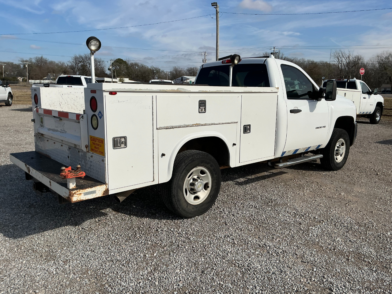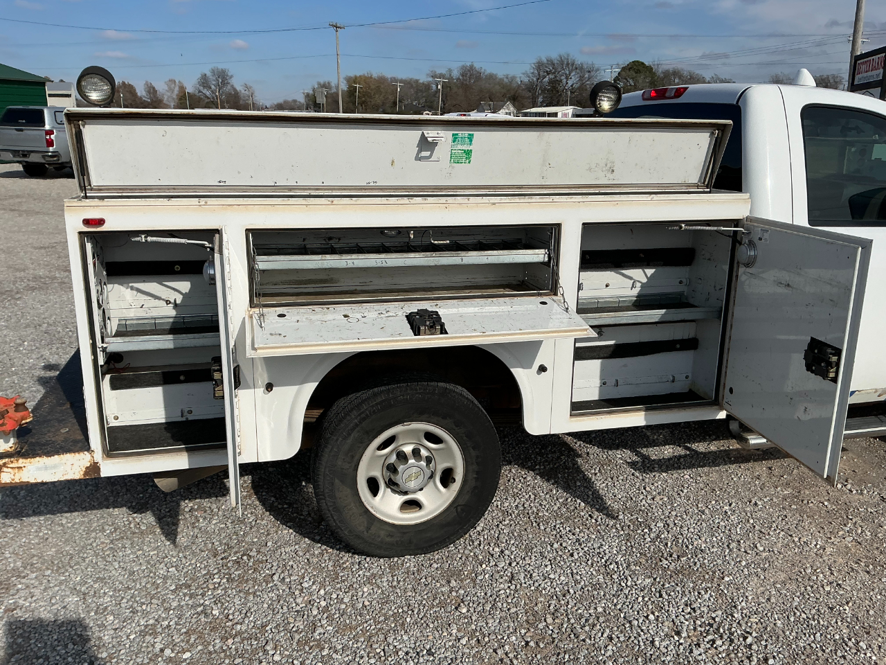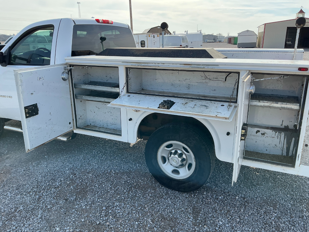 2010 CHEVROLET 2500HD REGULAR CAB LONGBED, 6.0L GAS V8 AND RWD, CLOTH SEATS, VINYL FLOORS, MANUAL WINDOWS AND LOCKS, CRUISE, HAS A KNAPHEIDE SERVICE UTILITY BED WITH TOP BOX, WORK LIGHTS AND STROBES, RUNS GREAT HAS 160K MILES