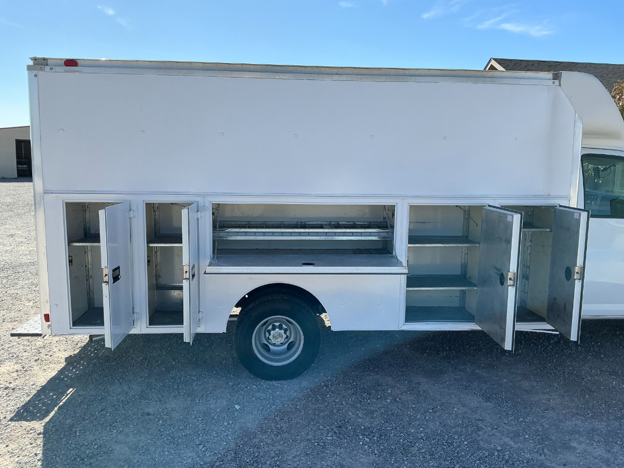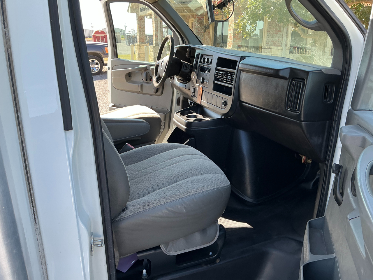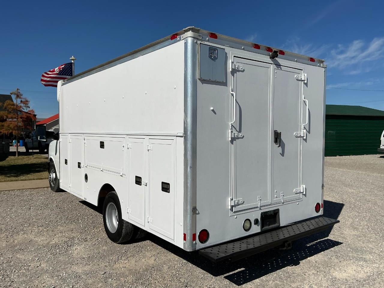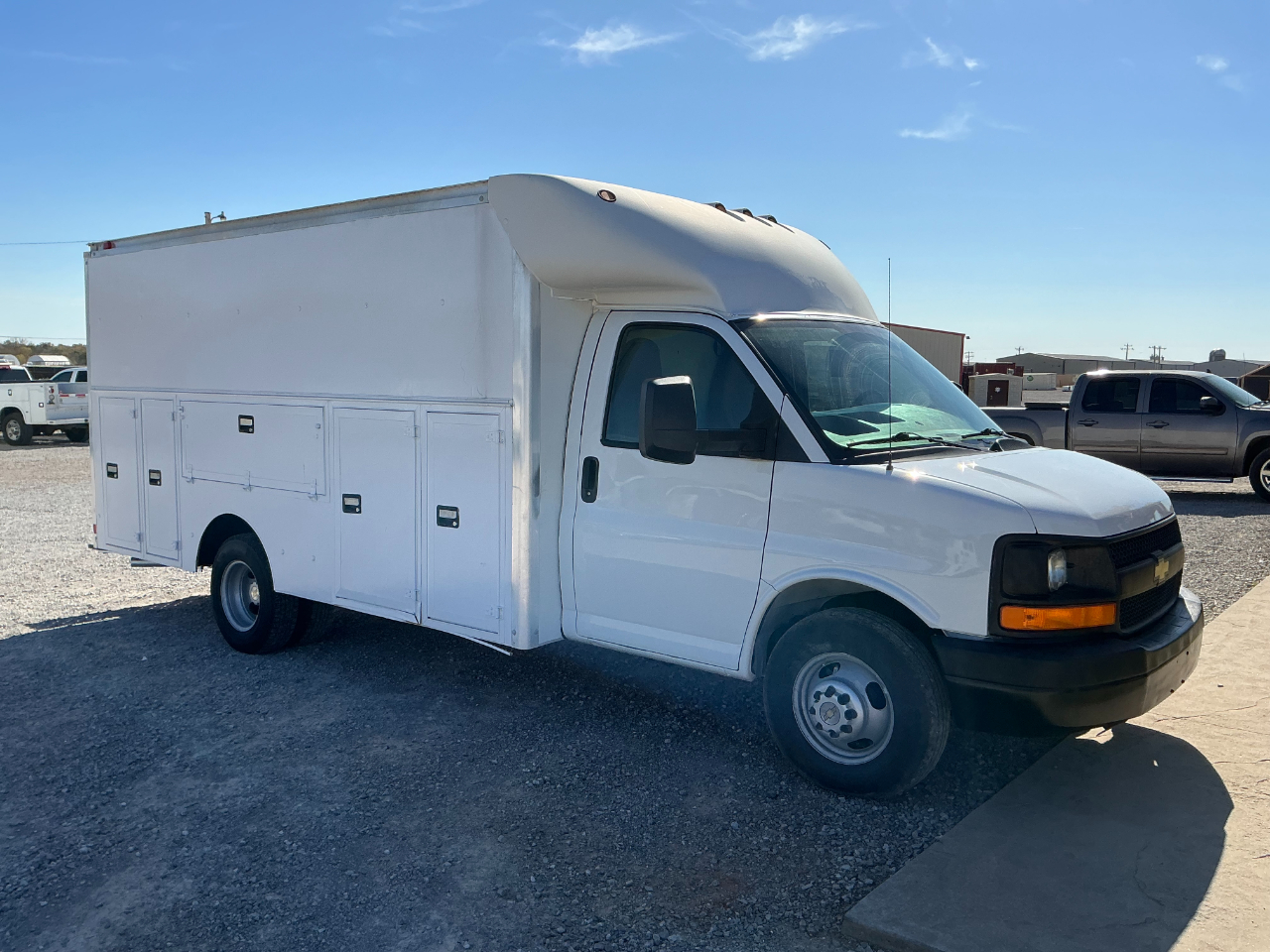 2012 CHEVROLET 3500 EXPRESS DUALLY, 6.0L GAS V8 AND RWD, CLOTH SEATS, MANUAL WINDOWS AND LOCKS, BACK UP CAMERA, TOW PACKAGE, HAS A SUPREME WORK BODY BED WITH UTILITY BED SIDE COMPARTMENTS, VERY CLEAN AND RUNS GREAT HAS 115K MILES